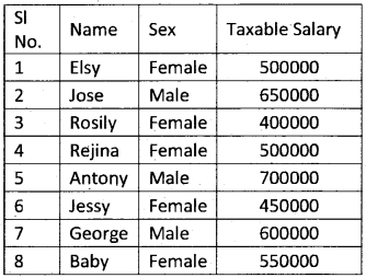 2. For males, Rs. 2,00,000 is allowed as standard deduction. For females, if taxable income is less than or equal to Rs. 5,00,000, then Rs. 3,00,000 is allowed as standard deduction, otherwise Rs. 2, 50,000. Use suitable logical function.