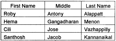The table given below shows the First name, Middle name and Last name of some employees. Show their Full name in the next column using CONCATENATE Function.