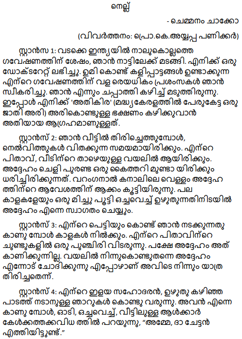 - Plus Two English Chapter 2 Rice (Poem) Chapter Wise Question and Answers PDF