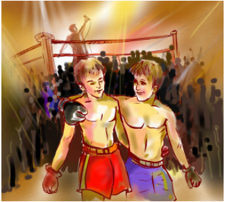 Both the fighters touched the gloves and nodded. Felix and Antonio turned and faced each other squarely in a fighting pose. Felix wasted no time. Now they were fighting like real competitors. The first round came to an end both trying hard to floor the other.