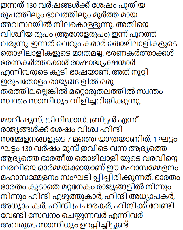 केरल के लोग सालों पहले से ही हिंदी फिल्मी गीतों से इतना लगाव रखते थे। शोले फिल्म के “ये दोस्ती” गीत केरल के आम लोग भी गुनगुनाते थे। जन साधारण की भाषा का प्रयोग इन फिल्मी गीतों में होते थे। कई लोग हिंदी सिनेमा समझने केलिए हिंदी भाषा सीखना शुरू किया था।
