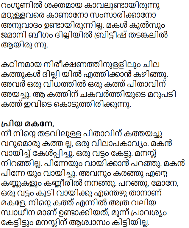 आज बेटी का खत मिला। बार-बार पढ़ा, मन न भरा । हाँ आज का दिन आँसू से भीगा एक दिन था। मेरी बेटी की अवस्था अब कैसी होगी? एक बार उसे देखने की इच्छा है, लेकिन कैसे? हमारी दिलीवासियों की हालत । वे लोग मेरे प्रति रोते है, मेरी स्थिति भी भिन्न नहीं है। एक बार उन लोगों को देख सकने की इच्छा थी। बेटी का खत मिला, जवाब भी लिखा, कैसे भेजूं? हाँ, कल किसी व्यक्ति का आश्रय लेना है। यदि उसने धोखा दे तो….। शादय मेरे अंतिम शब्द होगा। यहाँ इस कैद से बाहर आना मुश्किल है, किसी दिन हमारा देश स्वतंत्र होगा तब मैं नहीं होगा। स्वतंत्रता की प्रतीक्षा में ……..।